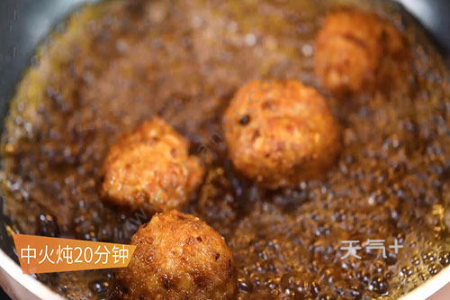 5.放入炸好的狮子头中火炖20分钟;