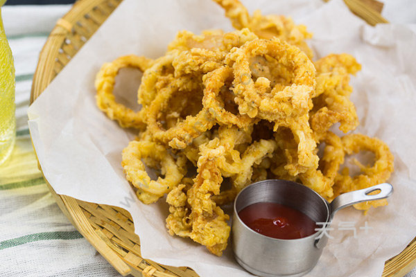 炸鱿鱼圈的时候,一定要改小火,否则很容易炸糊。
