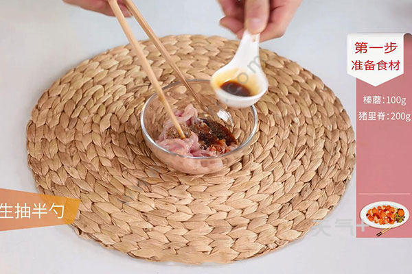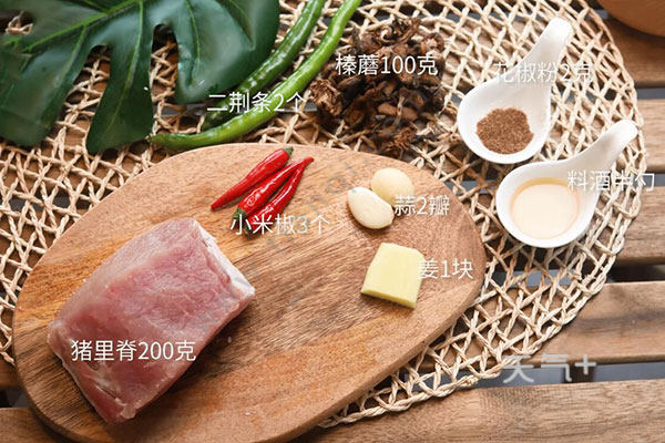 猪里脊200克,榛蘑100克;