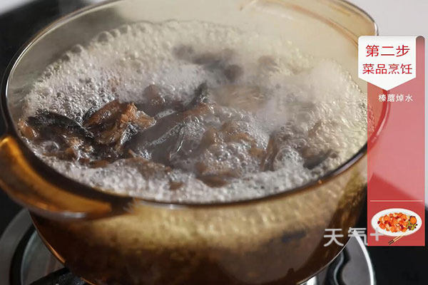 2.榛蘑放入锅中煮2分钟,捞出沥干;