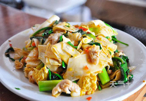 很多没去过云南的人不知道什么是“大救驾”,其实大救驾是炒饵块的一种,是把饵块切成小片,然后加入一些其他的配菜炒制而成,这道菜不但色泽诱人,味道更是让人流连忘返,吃了还想吃。