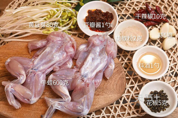 牛蛙600克,黄豆芽80克;
