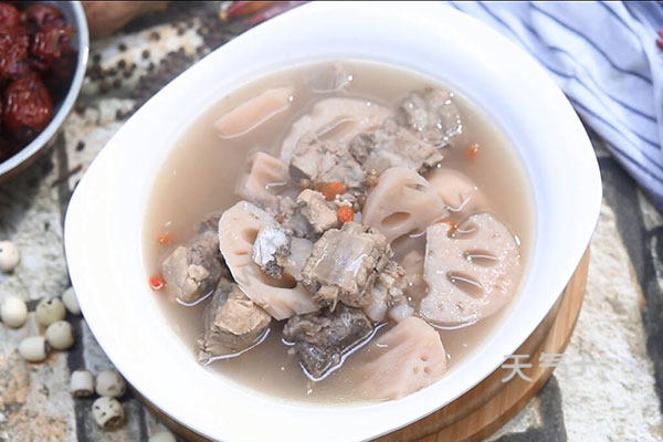 莲藕排骨汤可清热消痰、补血养颜,凡贫血、心慌失眠者皆可食用。另外还具有补肾养血、滋阴润燥、强健胃粘膜、预防贫血、改善肠胃、止血的功效。