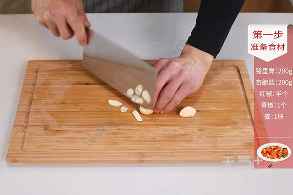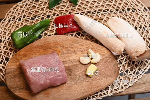 猪里脊200克,杏鲍菇200克,红椒半个,青椒1个;