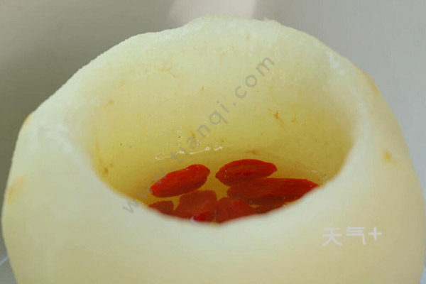 冰糖雪梨的做法 冰糖雪梨怎么做把雪梨去皮,挖去中间的部分,将冰糖倒进去,蒸锅预热好,将雪梨放进去,煮至冰糖完全融化之后,开盖,倒入枸杞,再放上去蒸上5分钟左右,关火端出。