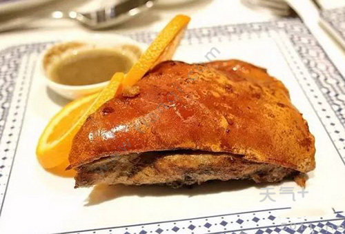 乳猪虽然是很常年的美食,但是葡式乳猪和我们吃的中式烤乳猪还是不一样,它的口味比较西式。用上了橄榄油、葡萄酒、黑胡椒、百里香等等食材进行腌制,烤的时候涂上了橄榄油,制作出来的乳猪肉质娇嫩,皮香肉滑,油而不腻。上桌时,一般是切成大块,配上香浓的鲜胡椒浇汁更好。