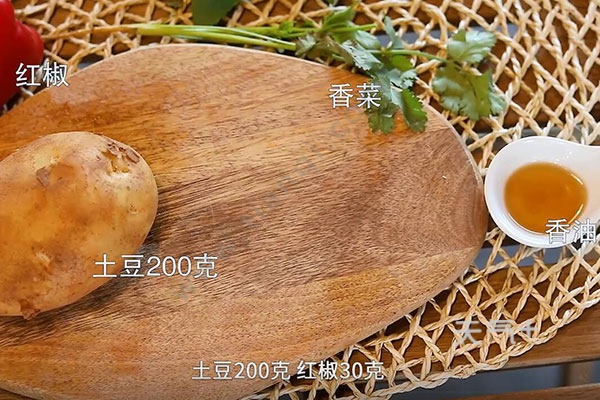 土豆200克,红椒30克,香菜1颗,