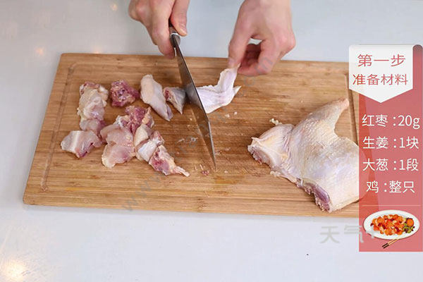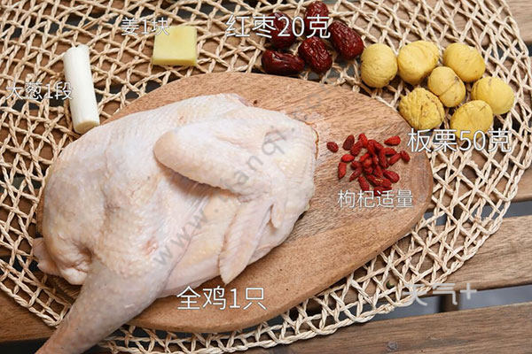 板栗50克,红枣20克,全鸡1只;