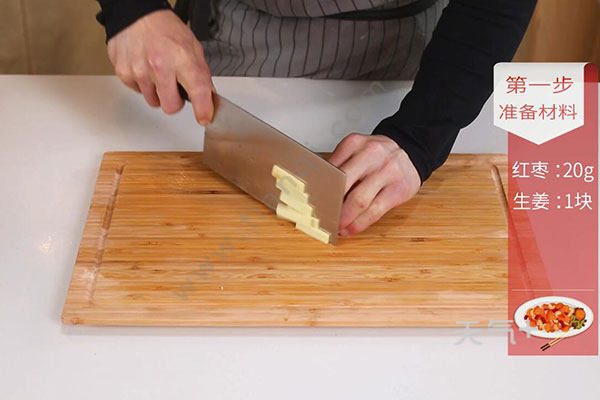 1.红枣温水泡20分钟,姜切片,葱切段;