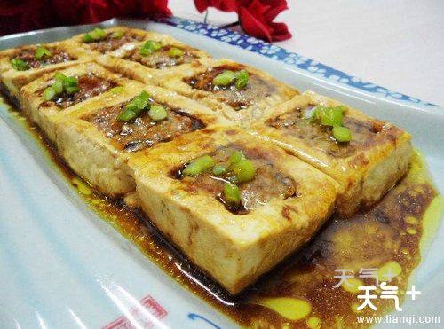 外皮坚实金黄,内里嫩如凝脂,轻轻一咬,顿时香气四溢,下咽后仍然满齿留香,这便是客家菜系中有名的东江酿豆腐。东江酿豆腐属于东江菜系,是由猪肉、豆腐、草鱼、虾米等配以多种佐料制成,豆腐滑嫩,馅料味美,原煲上席,滚热烫口,香味四溢。适于冬季养生,补身养虚这用。