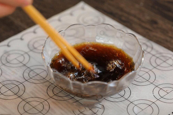 2.另一个碗中倒入料酒、酱油、食用油、盐巴,以及适量清水混合搅拌均匀,切一些蒜末,姜块和葱花。