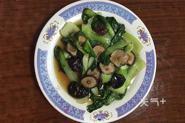油菜250克,香菇100克,盐少许,蒜3瓣,葱1根