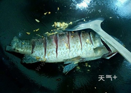 2、鲫鱼下锅的时候,用大火,因为鱼皮遇到热油会快速收缩,不要盖锅盖,这样腥气可以跑掉;