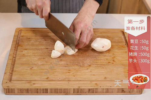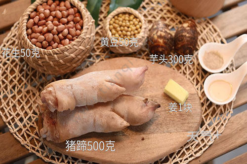 猪蹄500克,,芋头300克,花生50克,黄豆50克;