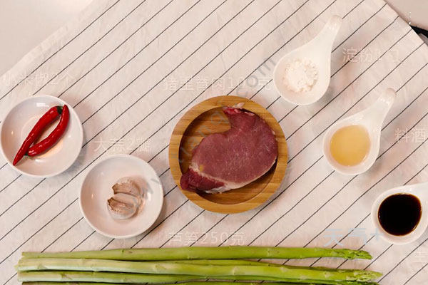芦笋,猪里脊肉,大蒜,小米椒;