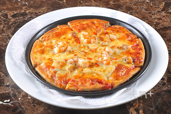 面粉加白糖和酵母粉,揉成面团发酵,虾仁挑出虾线,番茄去皮切块,锅里加黄油化开,彩椒放进去炒2分钟盛出,面团发酵后,取出排气,披萨盘刷一层油,面团放进去擀成面饼,扎上小孔,烤制5分钟,取出,刷上番茄酱和披萨酱,撒上彩椒粒,铺上虾仁、番茄块,放马苏里拉奶酪,烤20分钟取出。