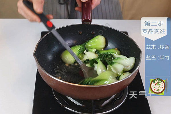 2、清炒油菜是一道快手菜,一定要大火爆炒,这样菜才会香脆,而且也不会夹生、出汤。