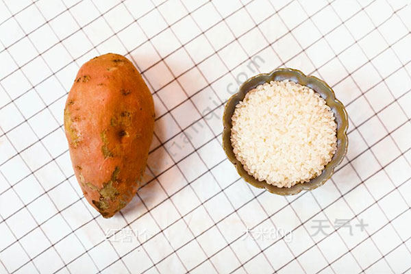 红薯1个,大米80克,红枣;