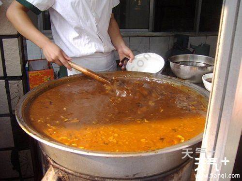 也有吃家进门先不答话,顾自取碗掰馍,而后一边递碗一边说道:大碗,肉丸少,辣子两下。 早上,尤其是冬日的早上,一大碗胡辣汤下肚,只觉一股暖流自胸腹直散到每一个毛孔,那份西北汉子的豪气不由得从胸中扩展开来,真叫一个美!