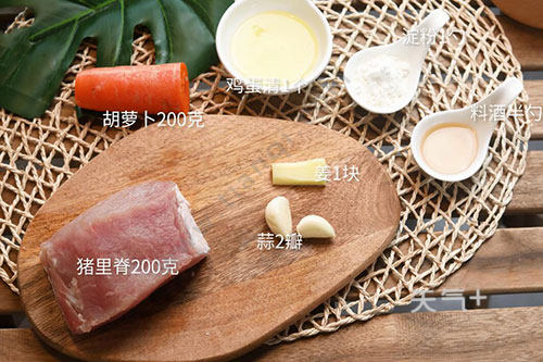 猪里脊200克,胡萝卜200克;